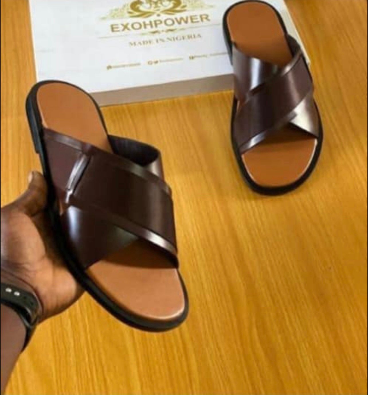 Men’s Crossed Leather Slippers
